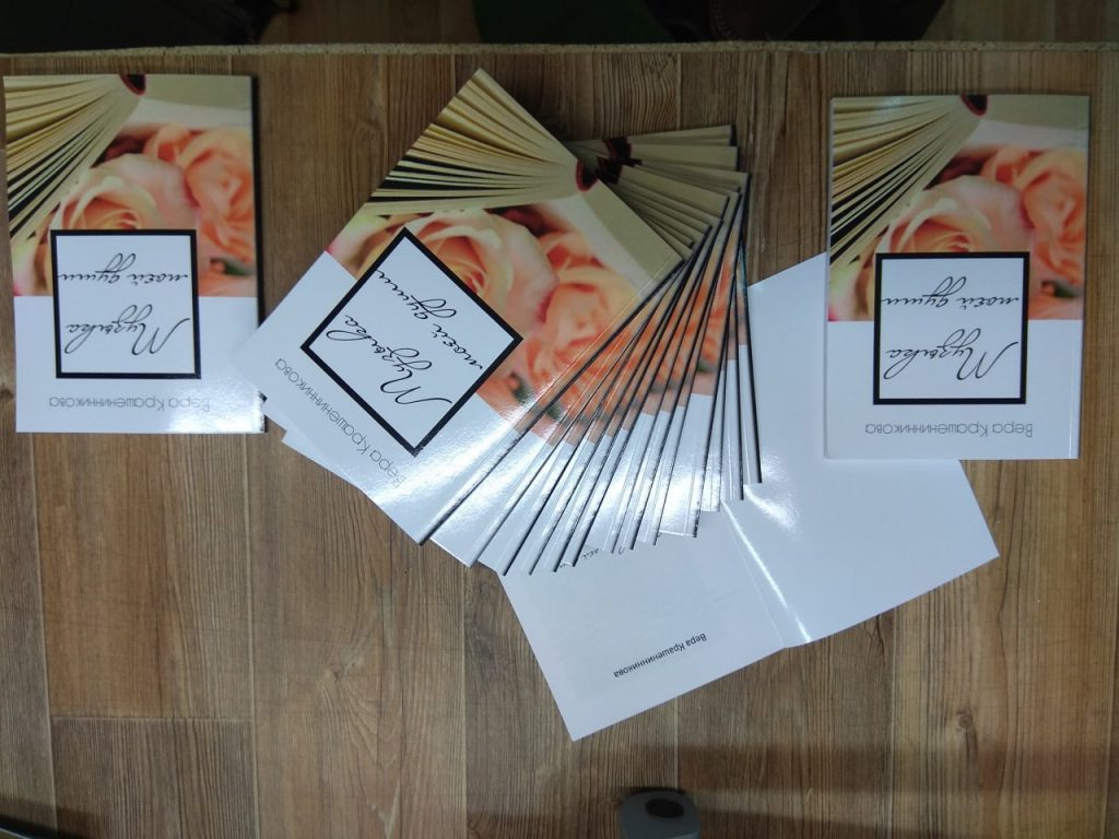- Лазерная печать — подходит для малых тиражей и срочных заказов. Обеспечивает чёткость текста и устойчивость к внешним воздействиям.